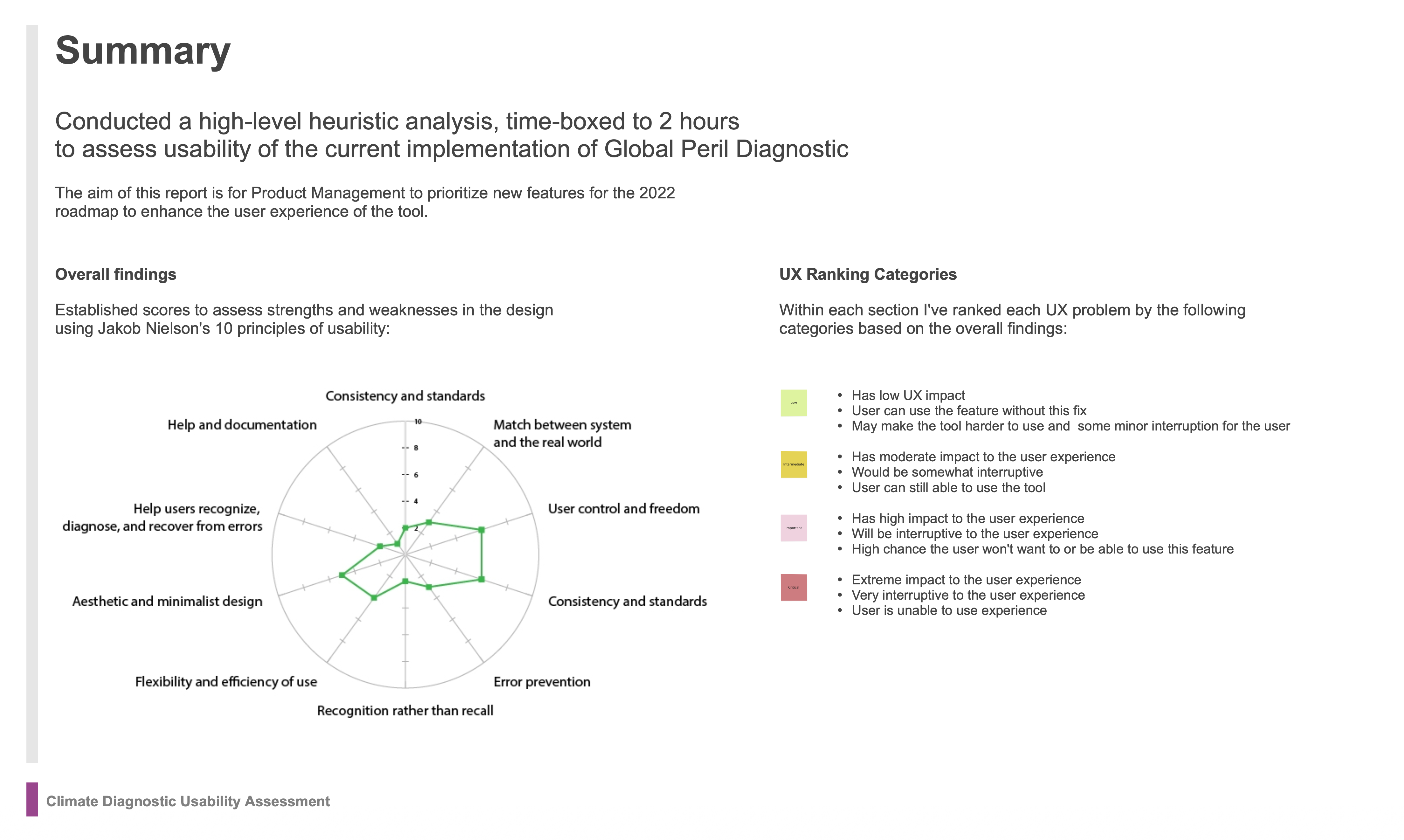 - Consistency: Design language extended across related products (Climate Diagnostic, Supply Chain Diagnostic).
