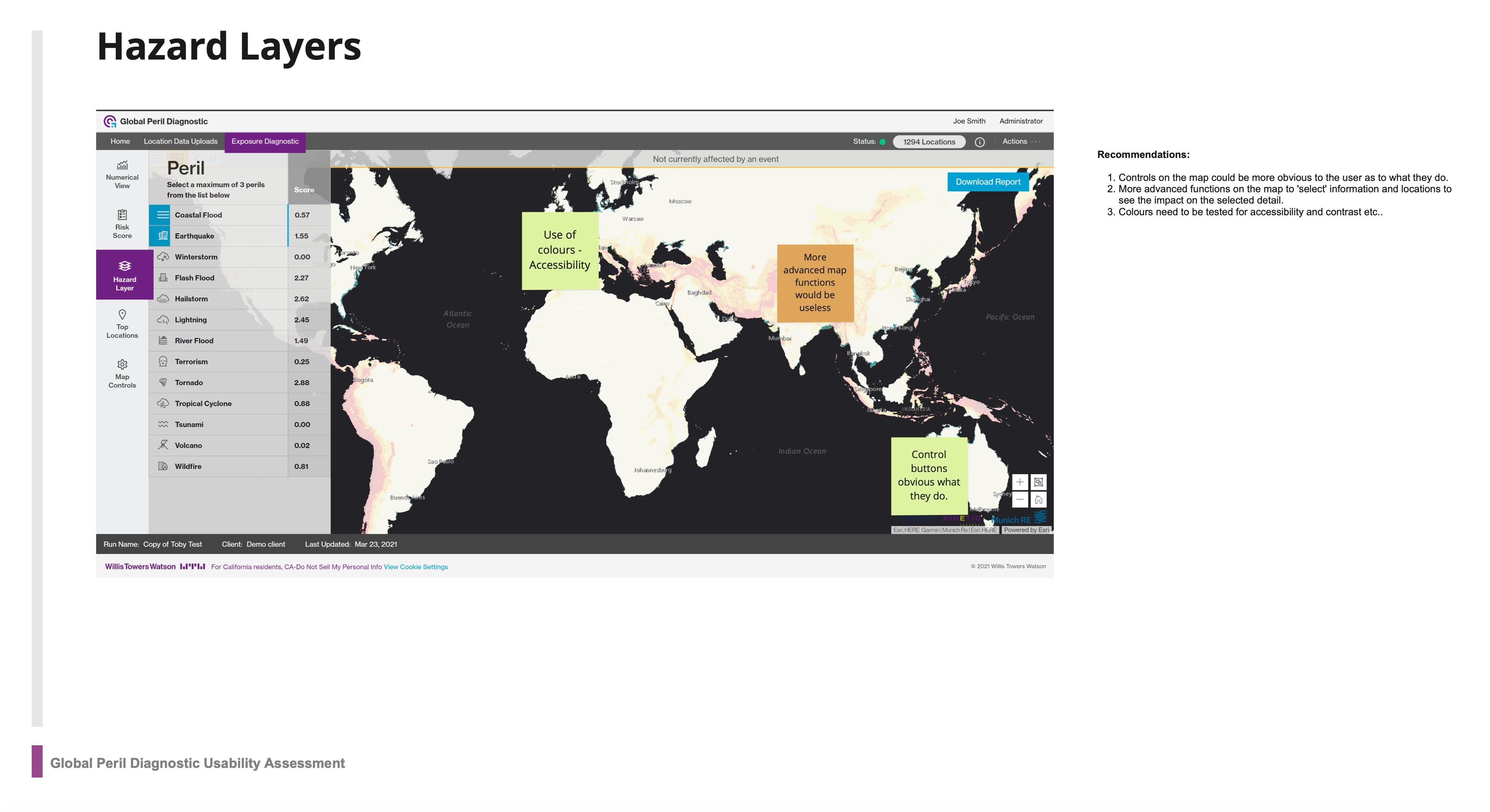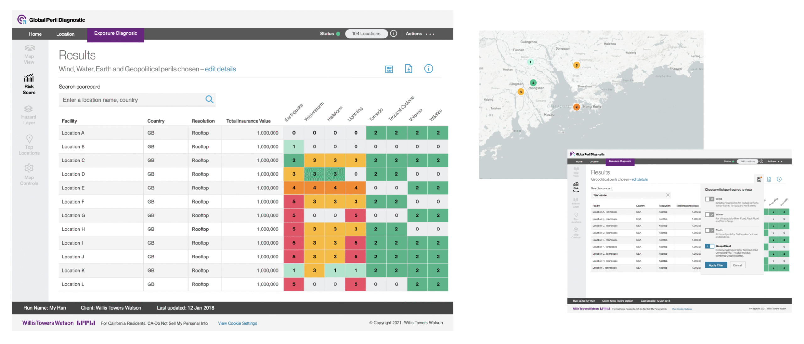 Their Global Peril Diagnostic (GPD) platform enables consultants and clients to evaluate exposure to natural, political, and man-made risks across portfolios — from earthquakes and floods to terrorism and supply-chain disruption.