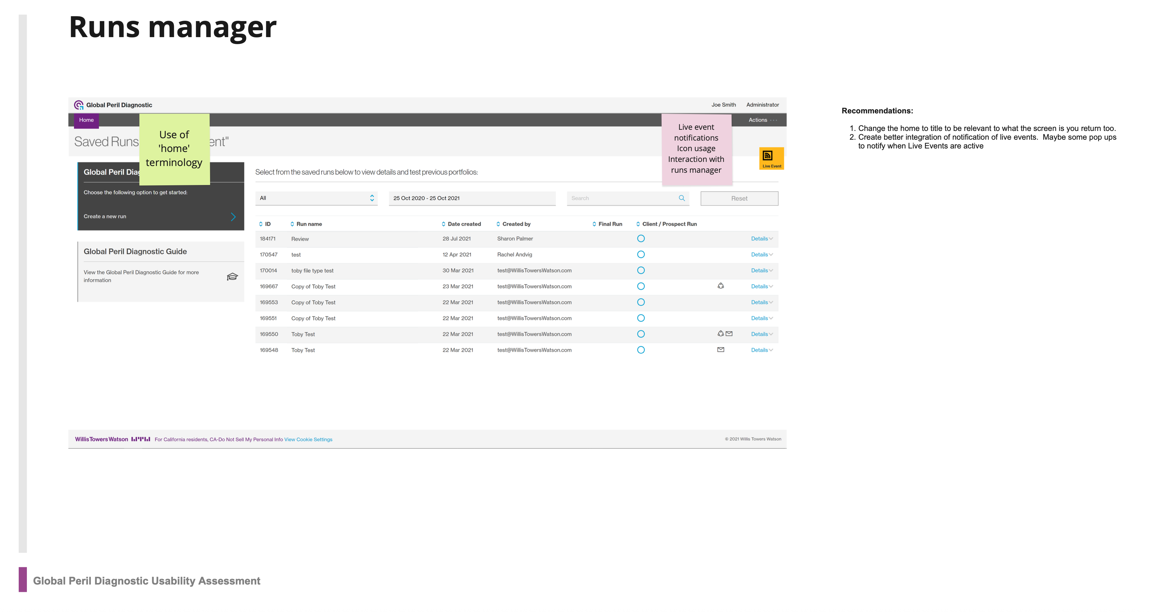 Detailed journey mapping uncovered friction during sharing, run management, and report generation.