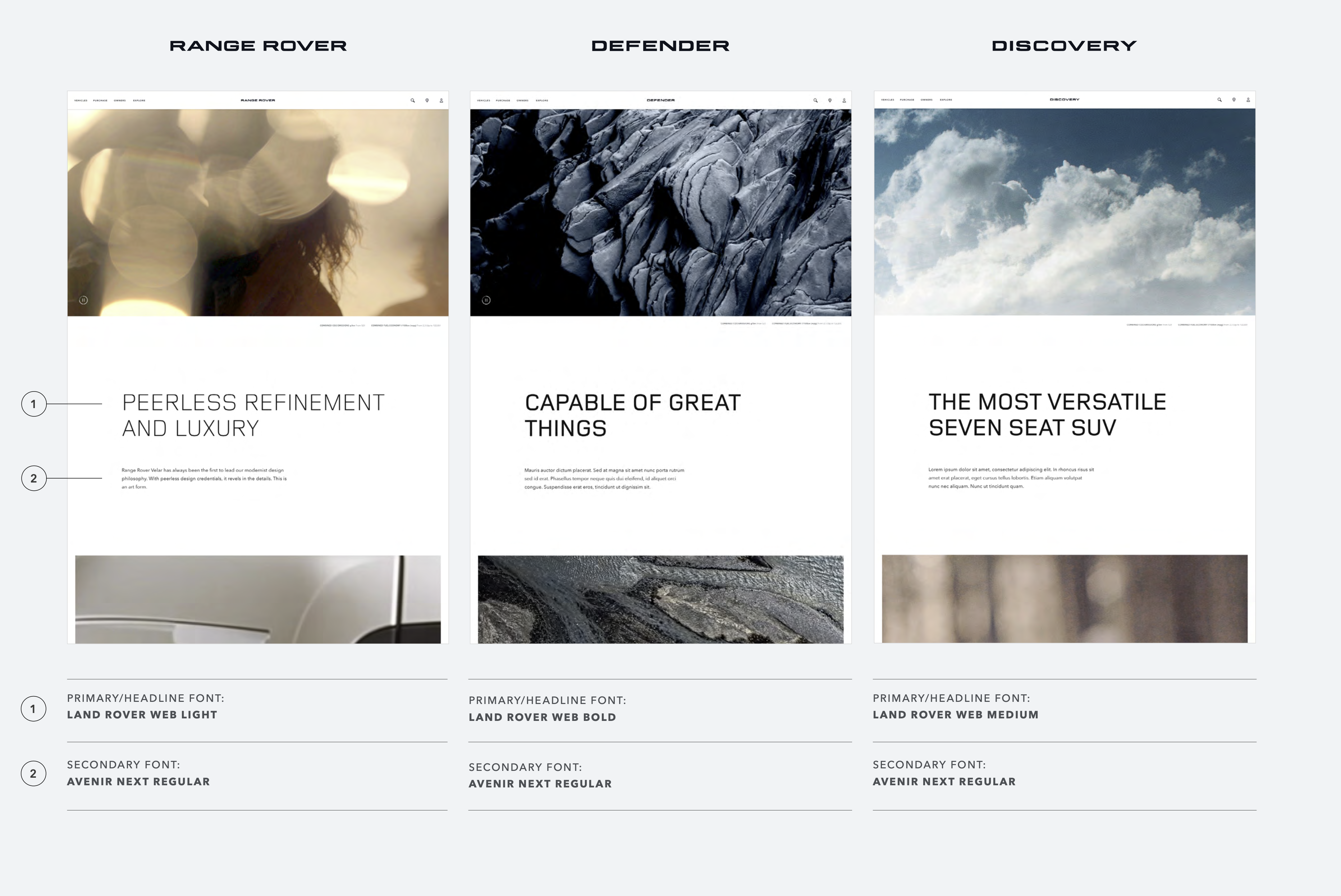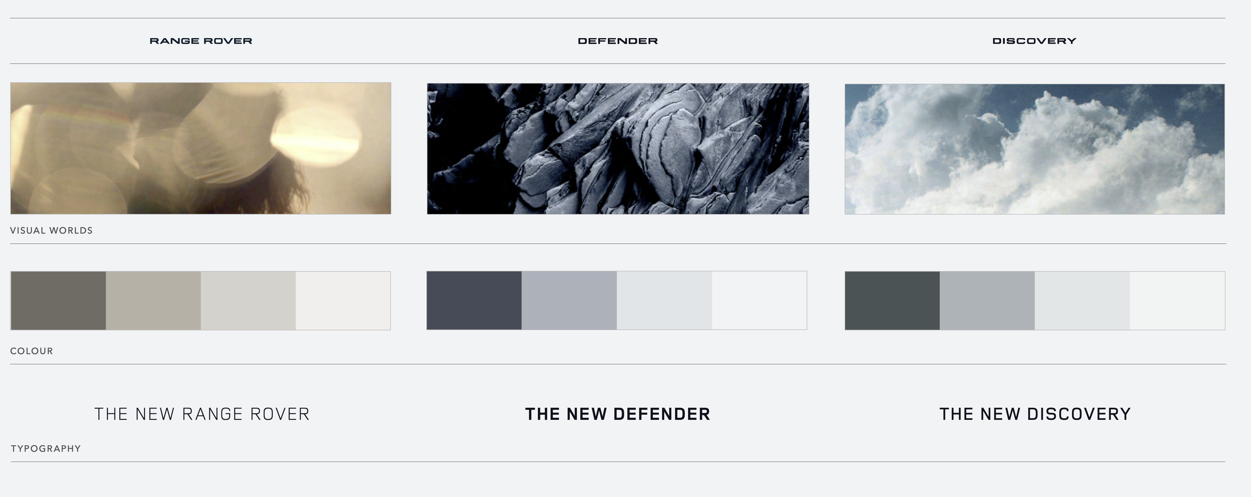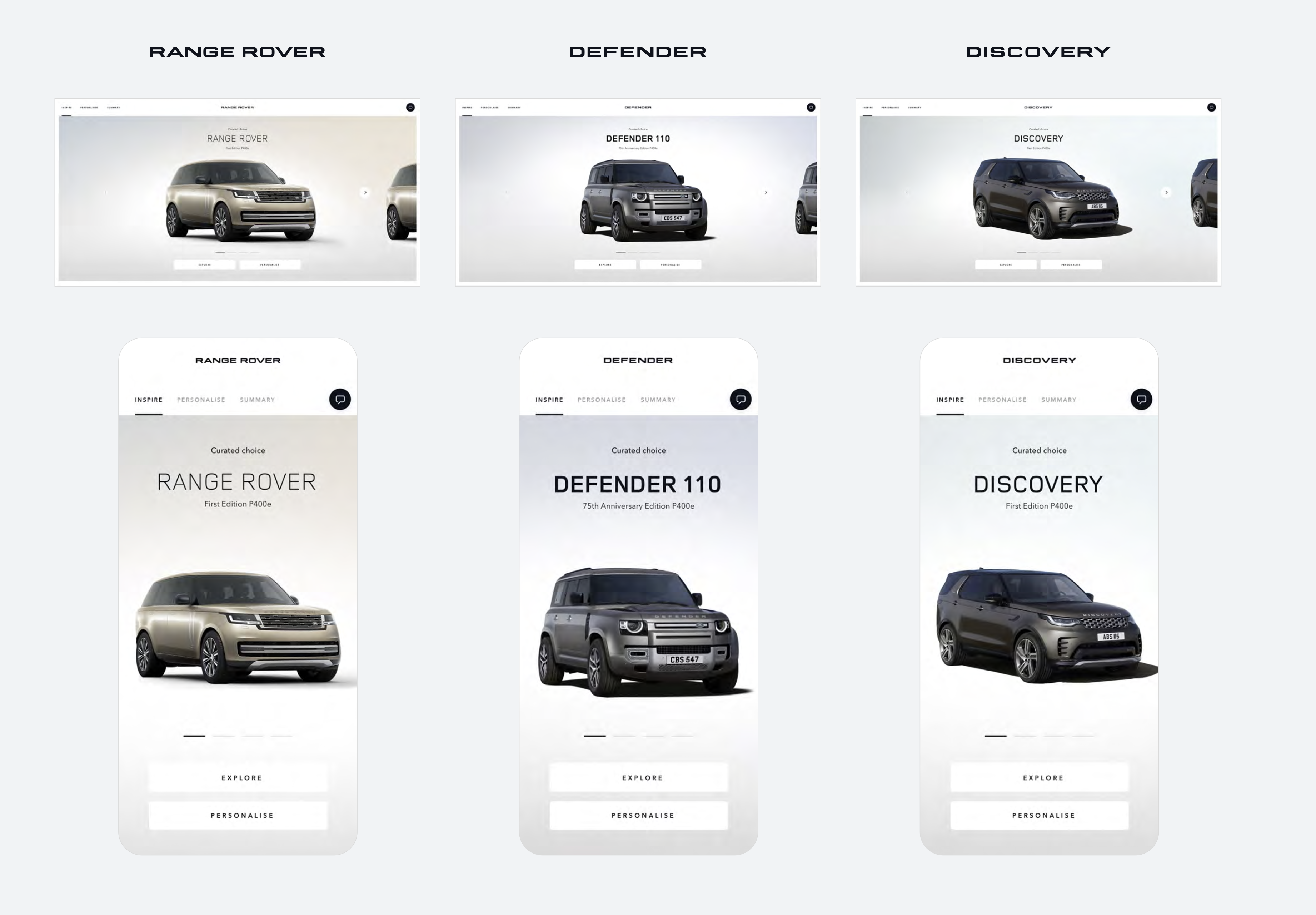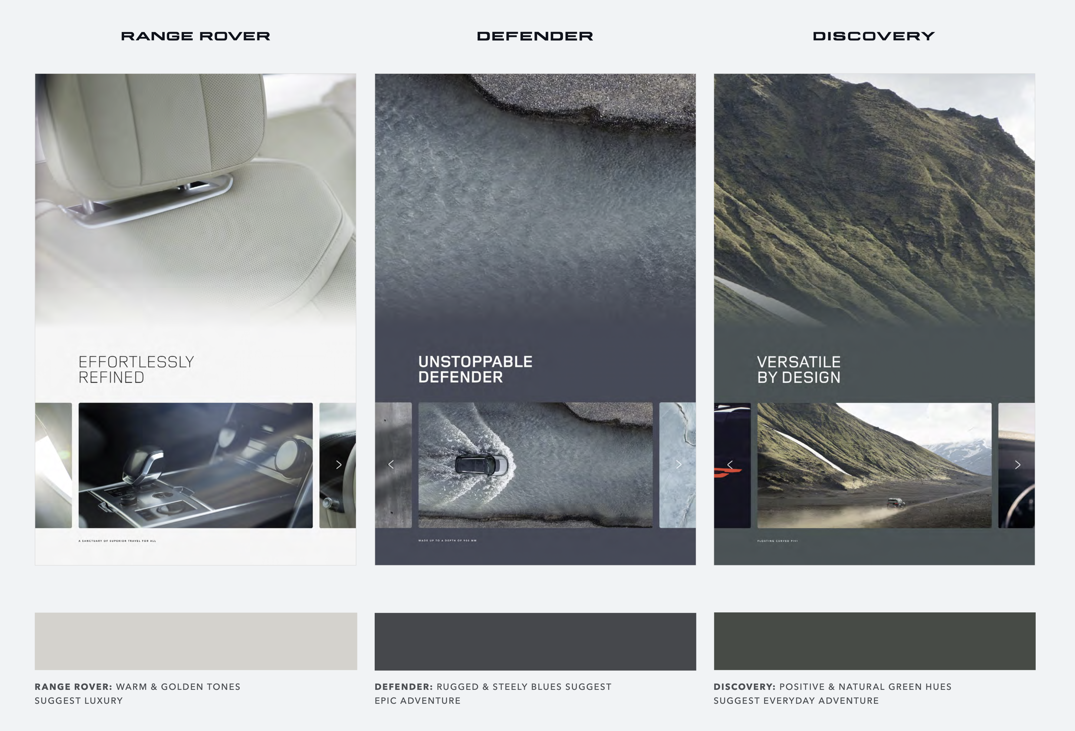 As part of Jaguar Land Rover’s Modern Luxury transformation, I helped define and activate the House of Brands Digital Guidelines — a framework for applying unified design principles across four distinct brands: Range Rover, Defender, Discovery, and later Jaguar.